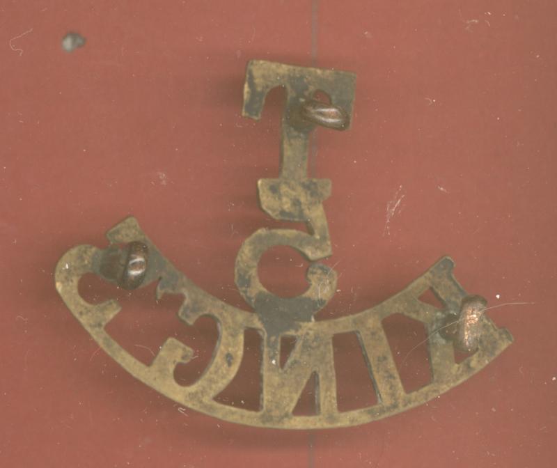 A fine scarce post 1908 brass shoulder title to the 5th Territorial Battalion, The King's Liverpool Regiment. Three loops to the reverse. VGC.