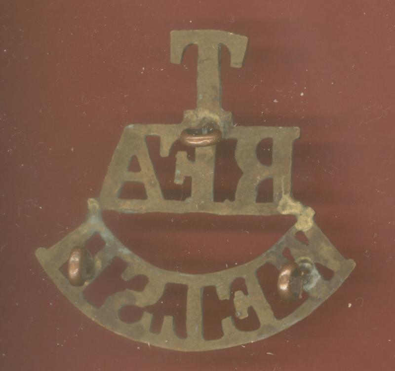 A good scarce one piece brass Territorial Royal Field Artillery Welsh shoulder title worn by the Brigade Ammunition Column. Three lugs to the reverse. VGC.