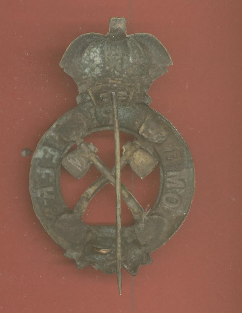 A fine scarce pre 1903 British made die stamped bronzed example. Crowned strap inscribed "Bombay Pioneers" with crossed silvered axes to voided centre. Stout pagri pin to the reverse. VGC.