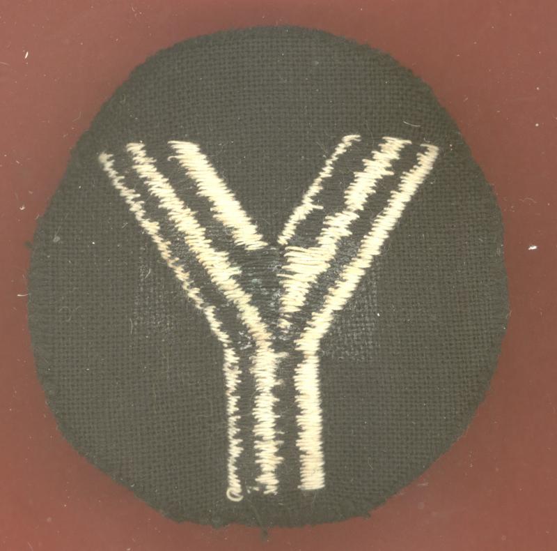 A good 2nd pattern embroidered white letter 'Y' on black felt disc. VGC.