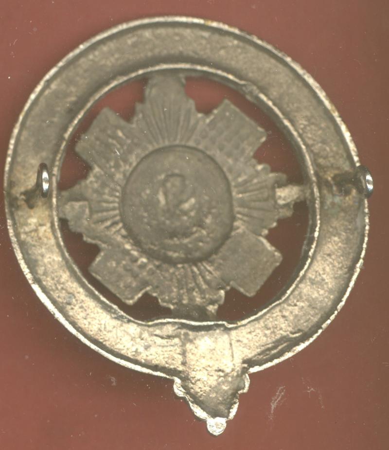 A fine scarce heavy die cast silver plated example. Two loops to the reverse. VGC.