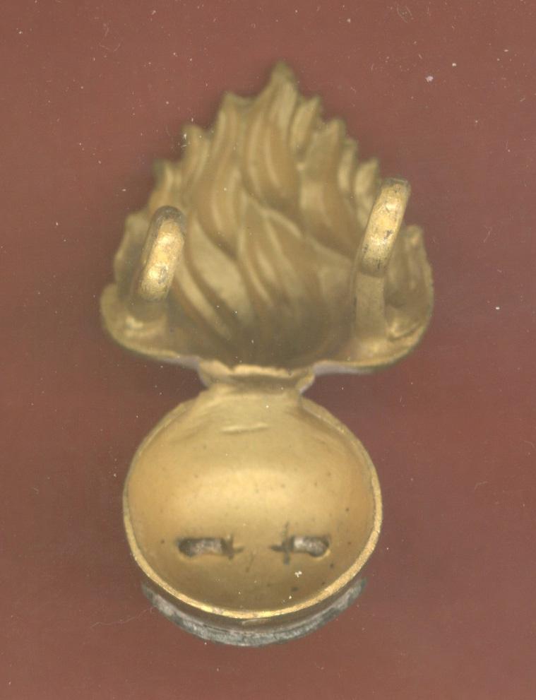 A fine and scarce post 1934 die stamped gilt flaming grenade with silver plate Inniskilling castle overlay. Two long loops to the reverse. VGC.