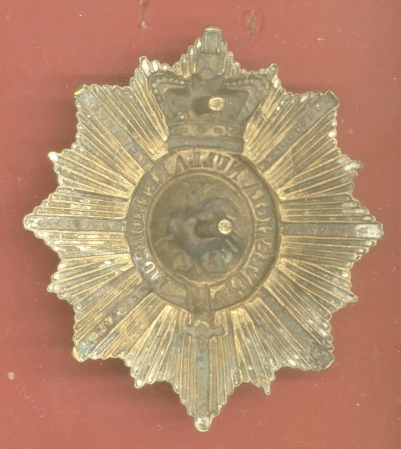 A fine scarce die cast brass example. Crowned Garter strap with White Horse of Hanover with Roman numeral V above and D.G. below. Superimposed on sixteen point star with six battles honours. Two screw posts to the reverse. VGC.