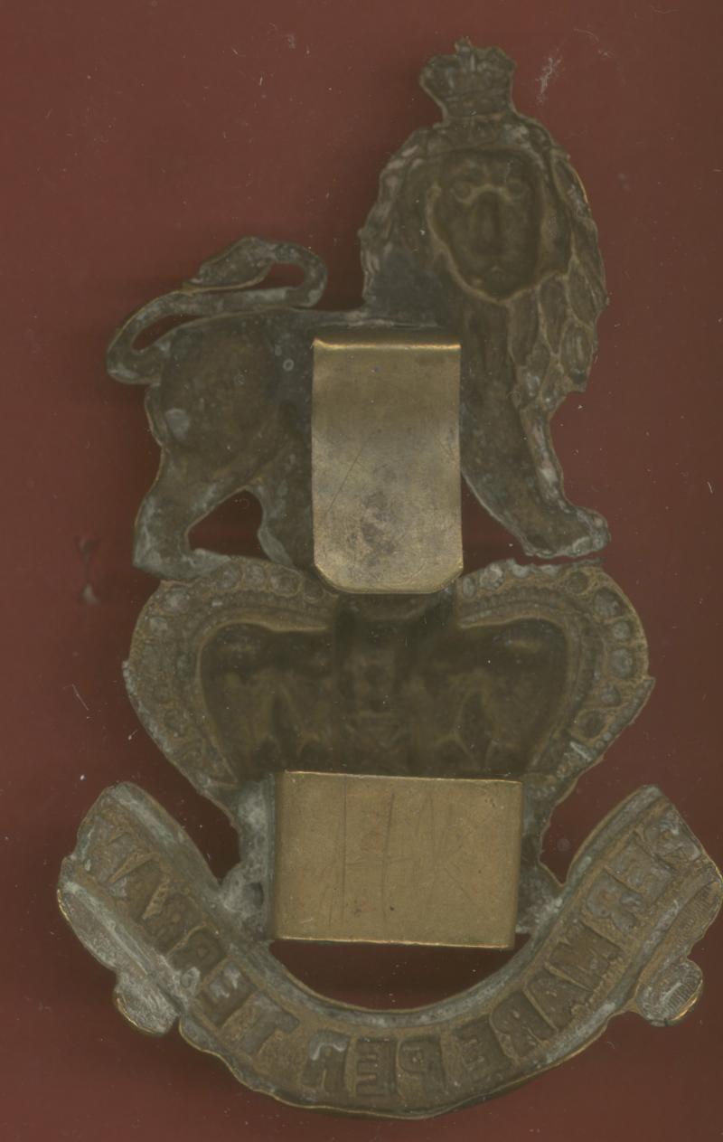 A good scarce large die stamped brass "Dog & Bonnet" with bottom scroll inscribed "Per Mare Per Terram".Box loop and tang to the reverse. VGC