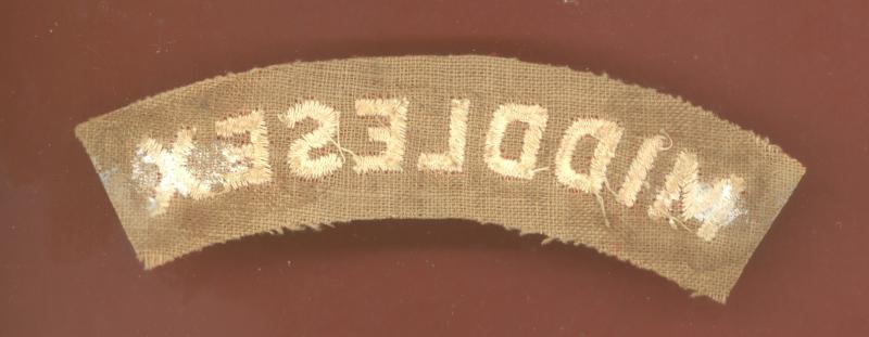 A good vintage white embroidered letters on red felt title. Removed from uniform. VGC