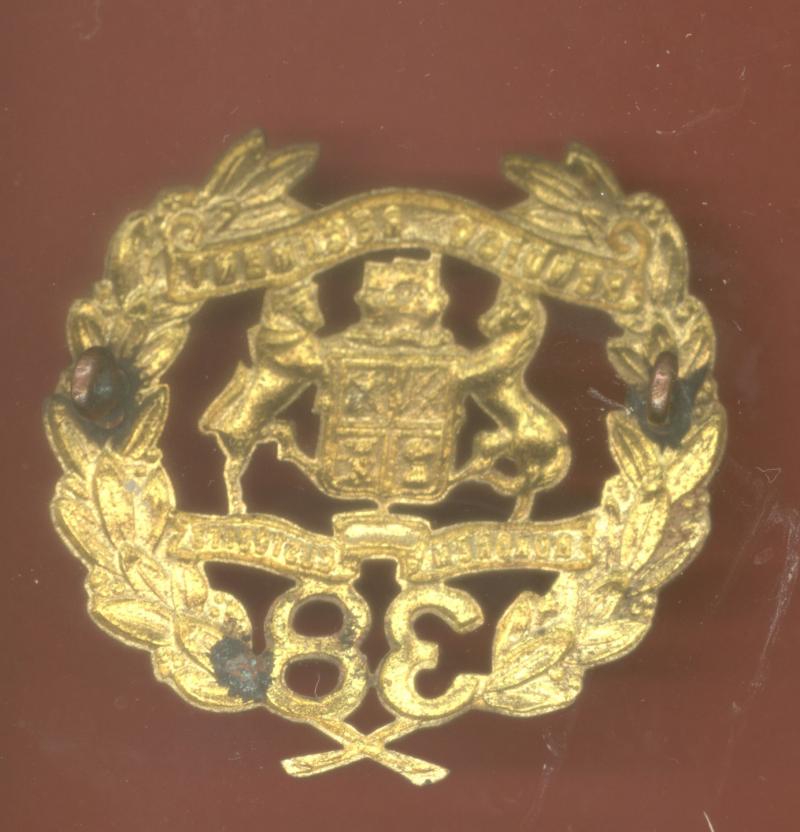 A fine scarce example worn circa 1930-42. Die-pressed brass title scroll over Coat of Arms on HONOUREM CUSTODITE scroll with 38 below, all resting in laurel sprays. Two loops to the reverse. VGC