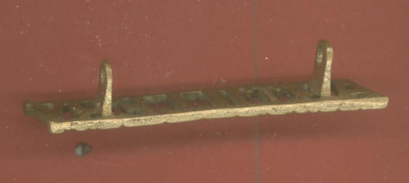 A good brass shoulder title. Two integral lugs to the reverse. VGC.