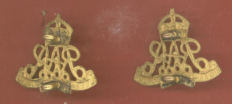 A fine scarce post 1901 die stamped gilded metal pair of collar badges . Two loops to the reverse of each collar. VGC.