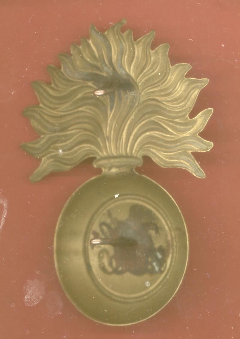 A fine scarce die stamped brass example worn circa 1879. Large flaming grenade with 'HAC' within rope circle to the ball. Two long loops to the reverse. VGC. KK 1760