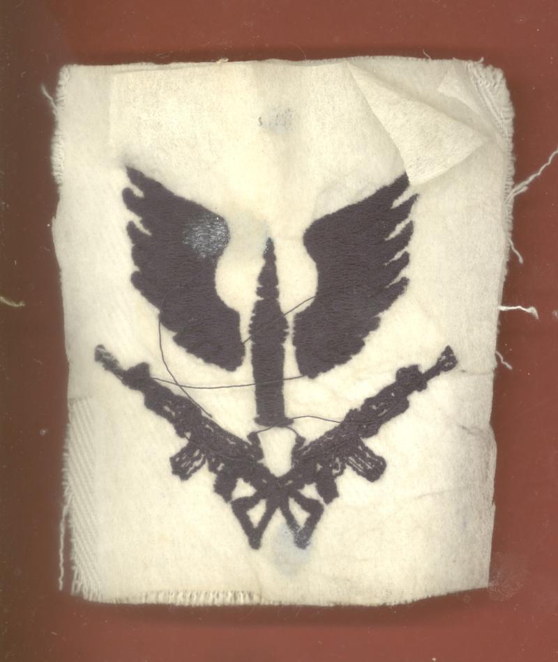 A good scarce circa 1962 embroidered example. Winged bullet over crossed rifles. Worn by Anti Drugs / Smuggling squads who were trained by British S.B.S. and U.S. Special Forces. VGC