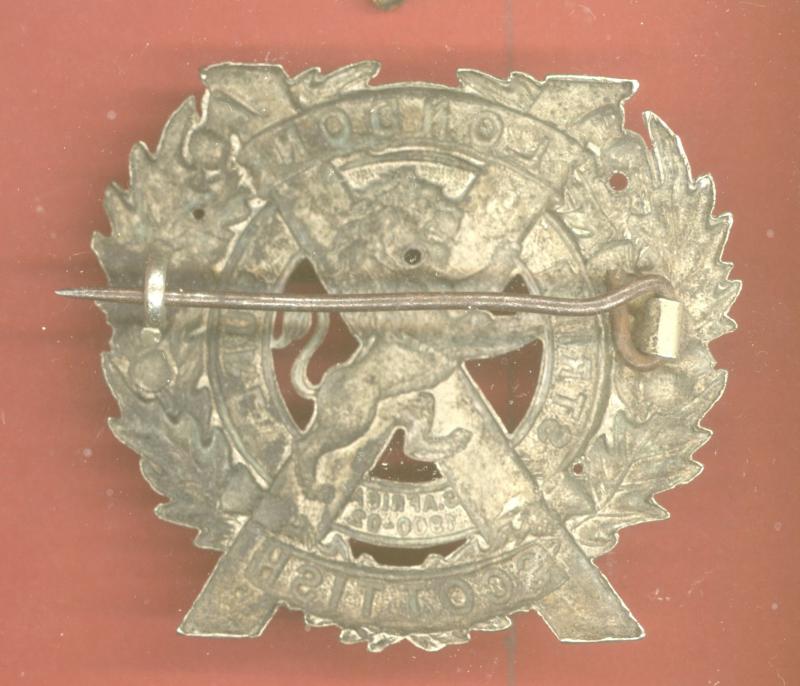A good vintage large pattern die stamped white metal example to the Territorial London Scottish. Original brooch pin to the reverse. VGC