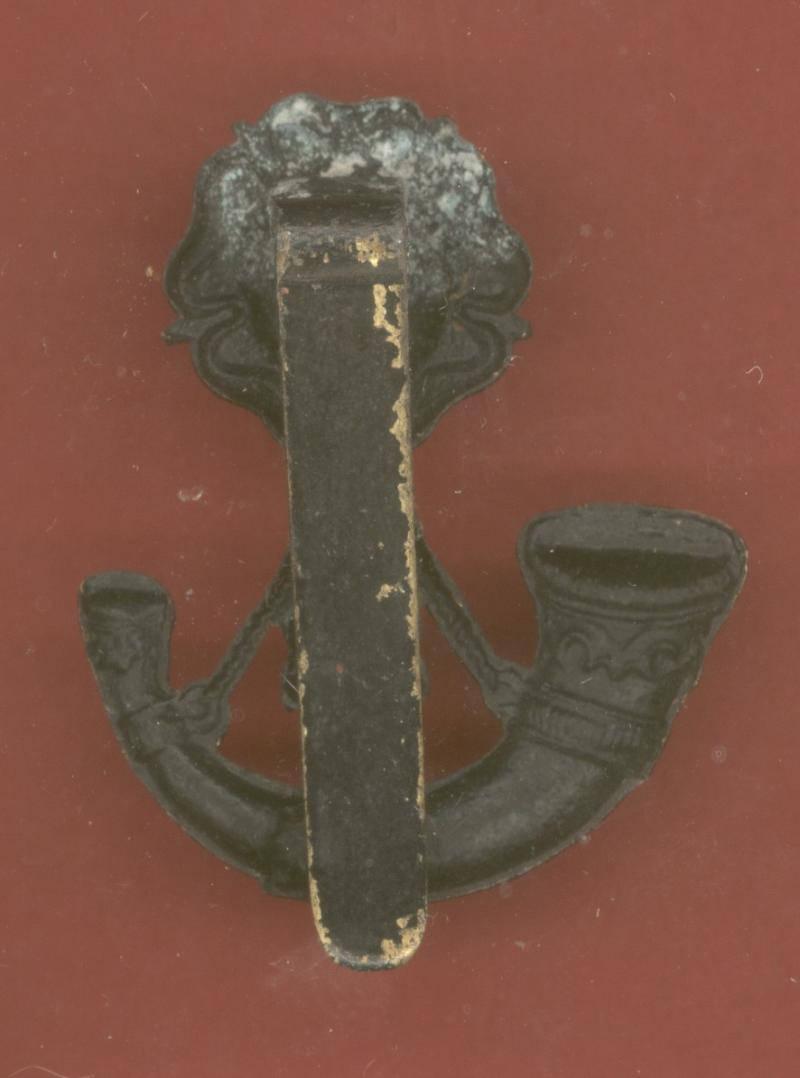 A good scarce die stamped blackened brass Rose above strung bugle example. Slider to the reverse. VGC.