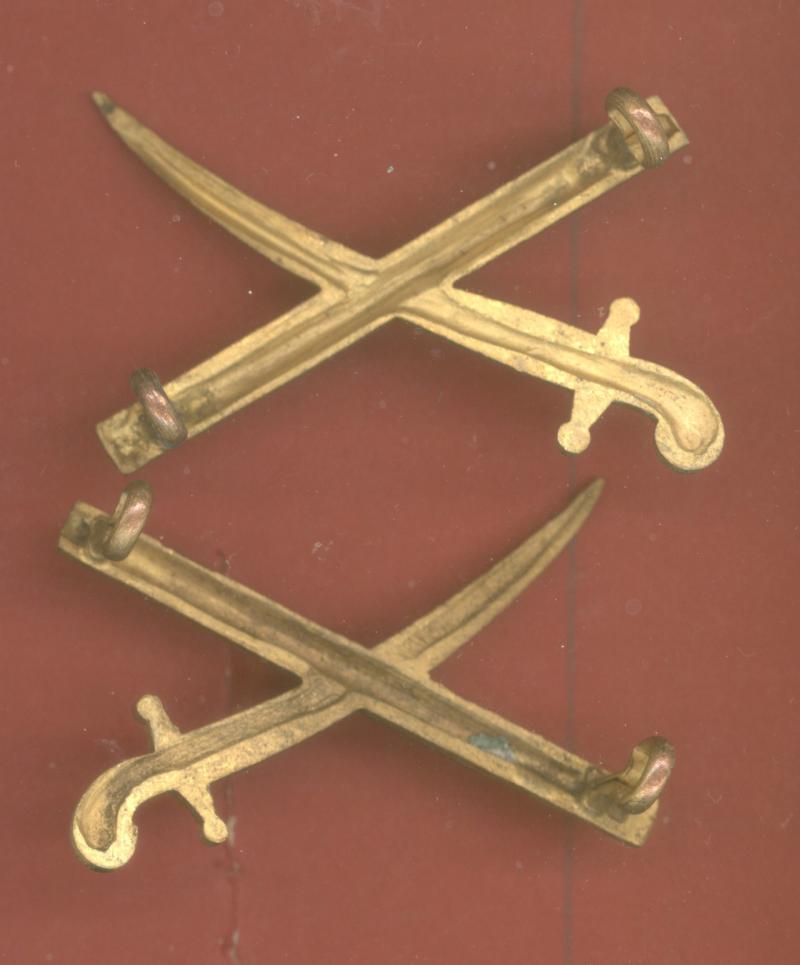 A fine vintage large die cast gilt crossed baton and sword facing pair of General's rank badges. Two loops to the reverse of each badge. General service wear. GC. 27.6mm high x 45.3 mm wide