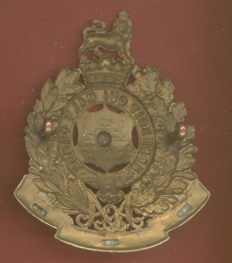 A fine scarce die stamped bi metal example worn circa 1897-1939. From 1922 this size only worn as Officer's helmet badge. Two loops to the reverse. VGC. 78mm high x 63mm wide