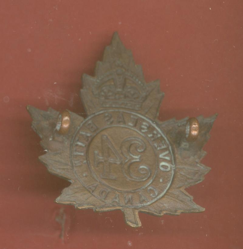 Canadian 34th Guelph Bn. WW1 CEF glengarry badge