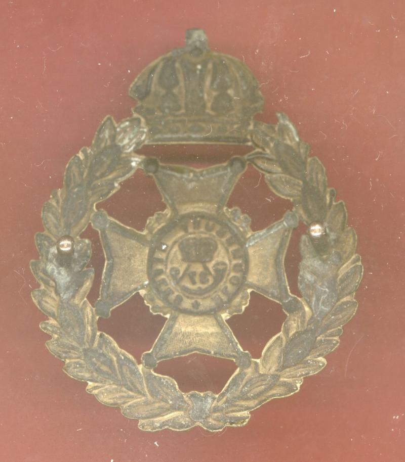 A fine scarce post 1880 die stamped brass example . Two loops to the reverse. VGC.