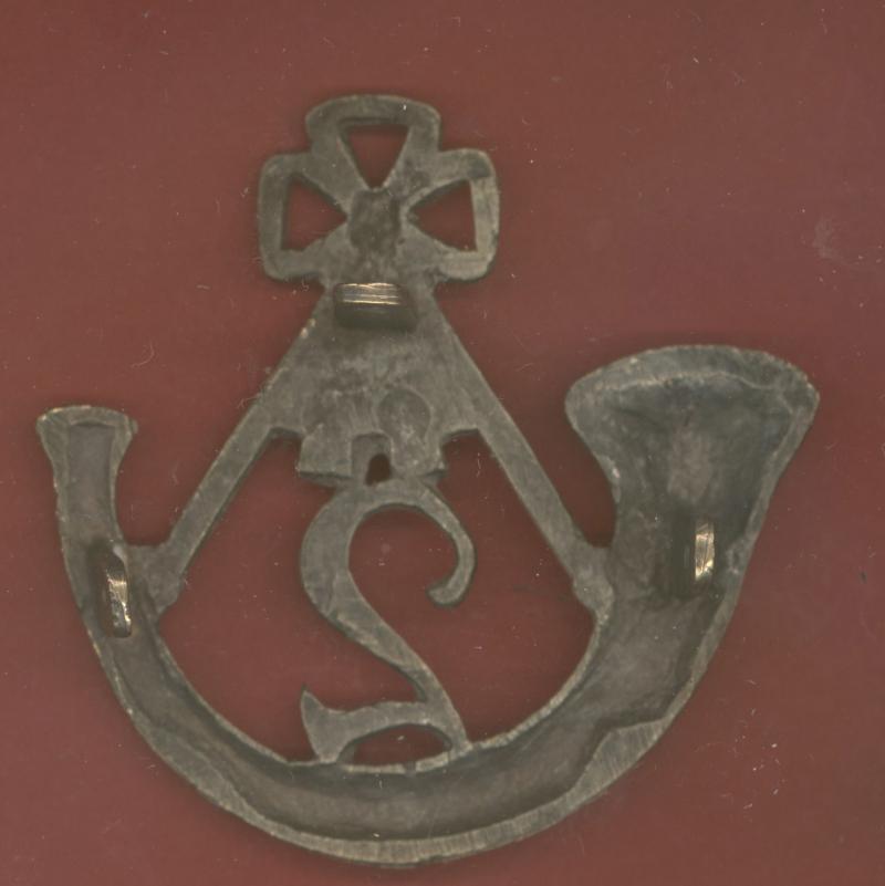A fine scarce large die cast white metal example.Strung bugle with '2'' to the centre. Three integral lugs to the reverse. VGC. Cox 2383