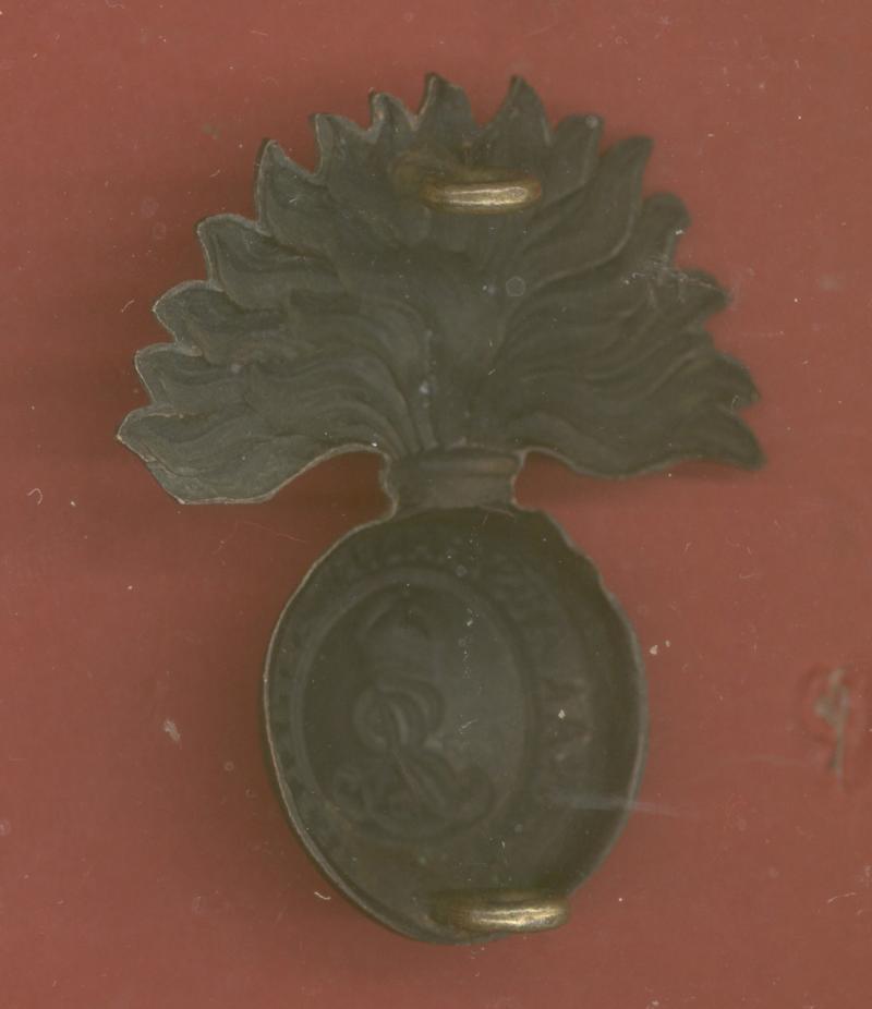 A fine scarce die-stamped bronze flaming grenade, the ball bearing ERVII cypher within title strap. Two loops to the reverse. GC