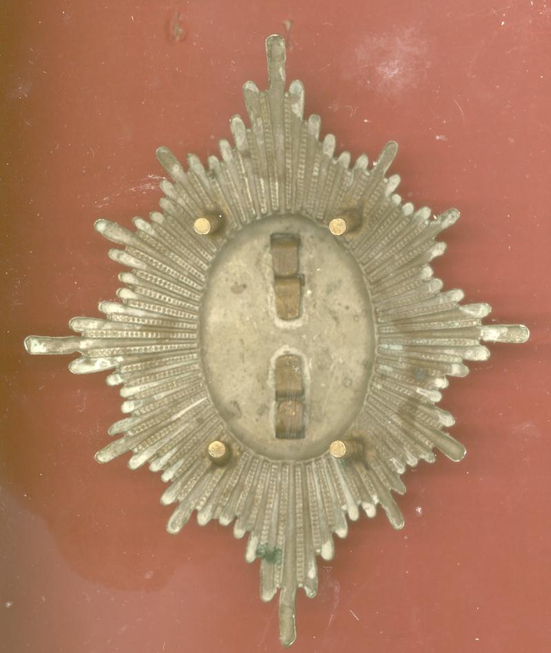 A fine scarce post 1871 die stamped example. Die stamped white metal star with gilded metal Garter Proper , to the centre white metal '1' black ground. Four screw posts to the reverse. VGC.