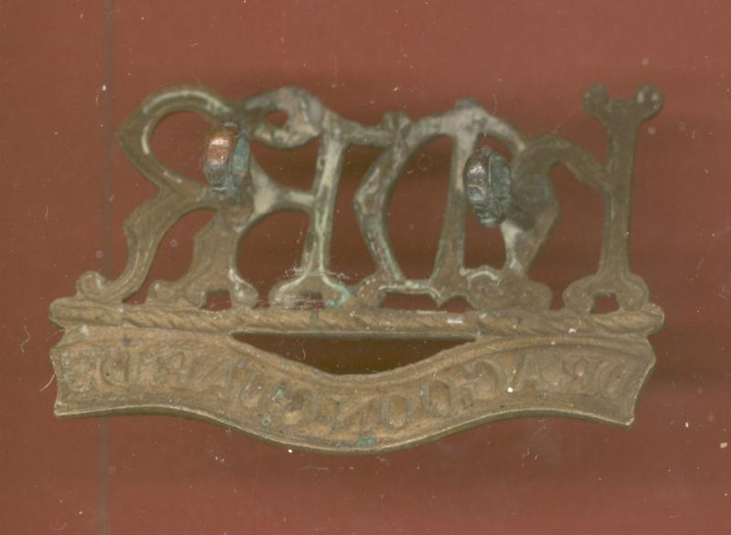 A good scarce brass shoulder title to Her Majesty's Reserve Regiment of Dragoon Guards .Two toned loops to the reverse . VGC.