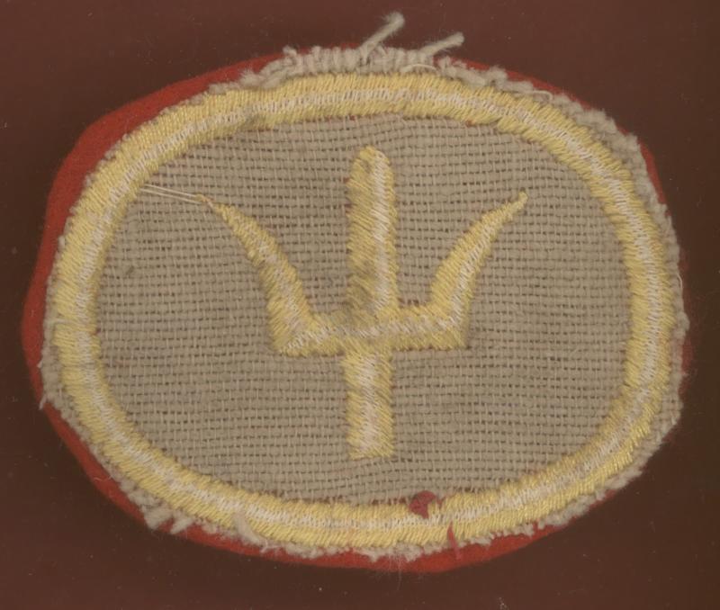 A good 3rd pattern embroidered yellow trident on a red oval with yellow border example. VGC.