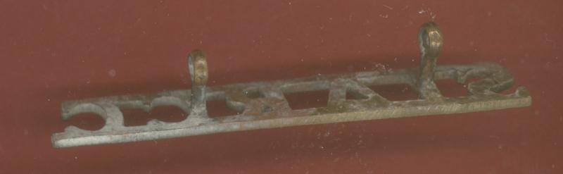 A fine scarce brass shoulder title. Two loops to the reverse. VGC.