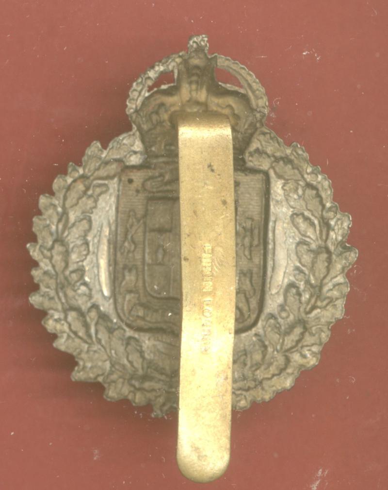 A fine scarce post 1901 British made die stamped white metal example. Slider to the reverse. Makers stamp Firmin, London. VGC.