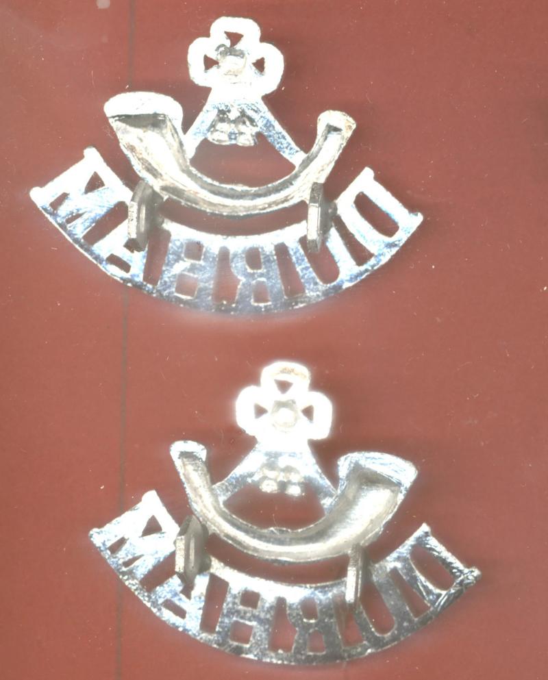 A good facing pair of silver anodised aluminium titles worn circa 1952-58. Two hex type lugs to the reverse of each. VGC.