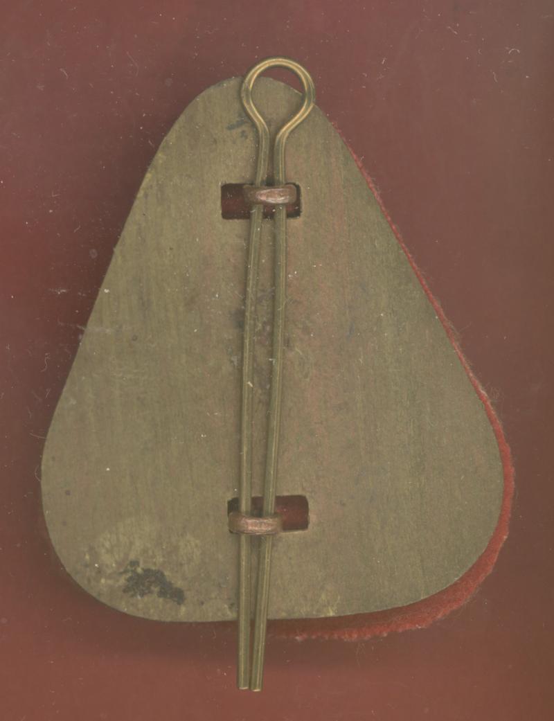 A good scarce post 1931 die cast white metal example. Two loops North/South to the reverse. On red felt with original brass backing plate. VGC. Seaman page 15 fig 5