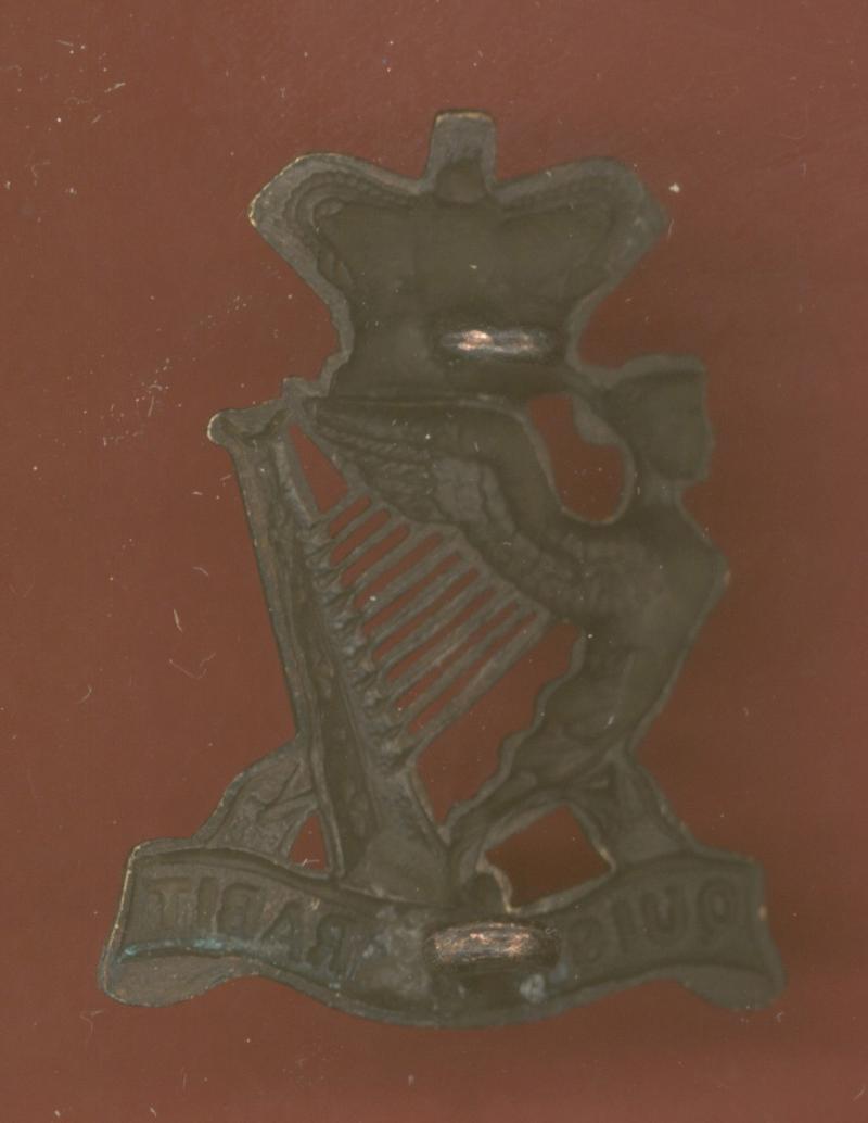 A good scarce die stamped blackened brass example. Crowned Maid of Erin Harp on "Quis Separabit" scroll. Two loops to the reverse. VGC.
