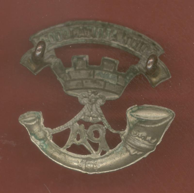 A good early die stamped white metal cap badge with 'South Africa 1900-01' top scroll. Two long loops to the reverse. VGC