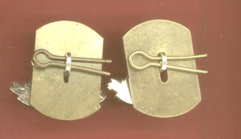 A good scarce gold anodised aluminium pair of other ranks collar badges. Single lugs with brass backing plates and pins to the reverse. VGC