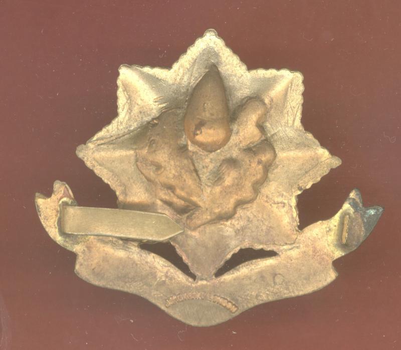 A fine post 1896 die cast gilt Officer's Dress cap badge. One of two blades to the reverse . Makers stamp J.R.Gaunt , London. VGC.