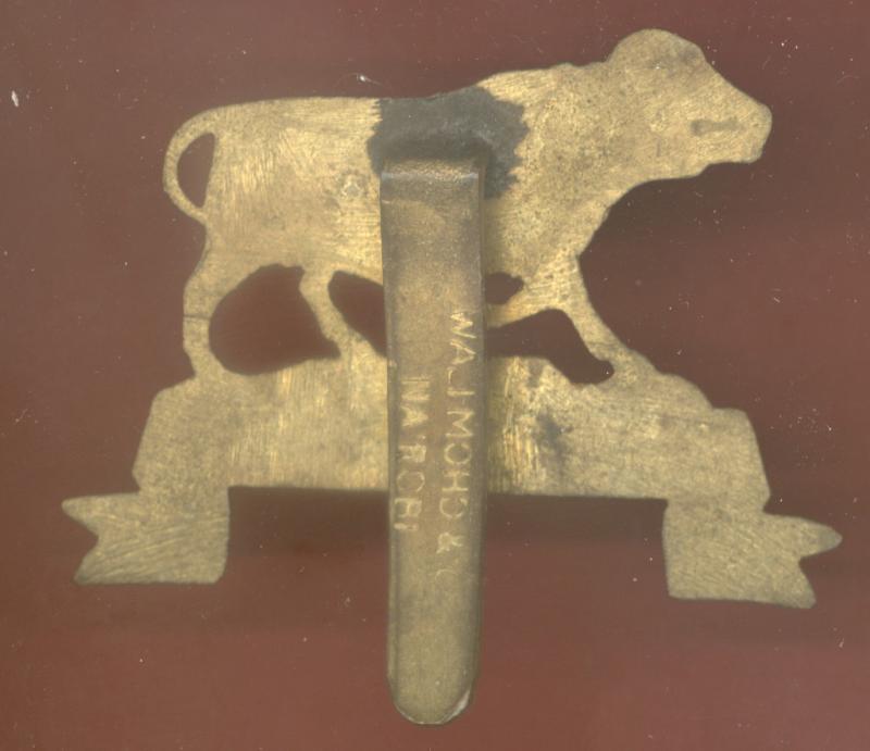 A good scarce locally made die cast brass example worn circa 1937-63. Slider to the reverse. Makers stamp Walimohd & Co Nairobi. VGC.