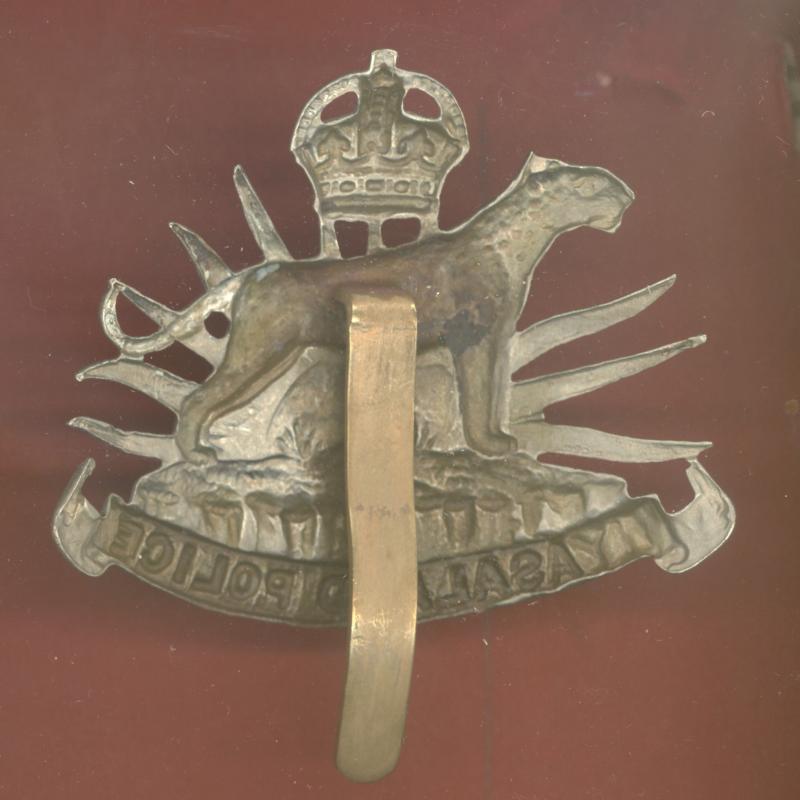 A super scarce pre1953 British made die stamped white metal example. Crowned leopard on a mountain top backed by a sunrise over title scroll. Slider to the reverse. VGC Renfrews 679