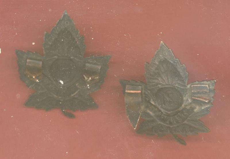 A fine scarce die stamped bronzed pair of collar badges. Two double tangs (one pair missing from one collar) to the reverse of each collar. Makers stamp O.B.Allan. VGC