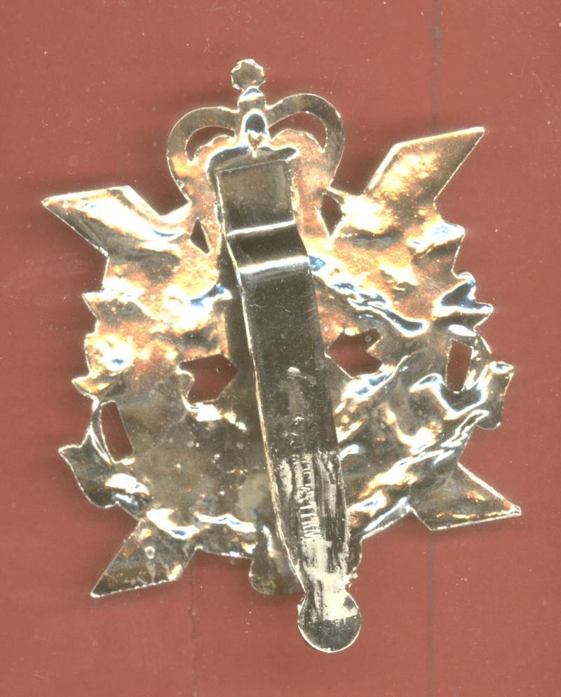 A good Queen's Crown example worn post 1953. Die cast chrome metal with slider to the reverse. Makers stamp William Scully. VGC.