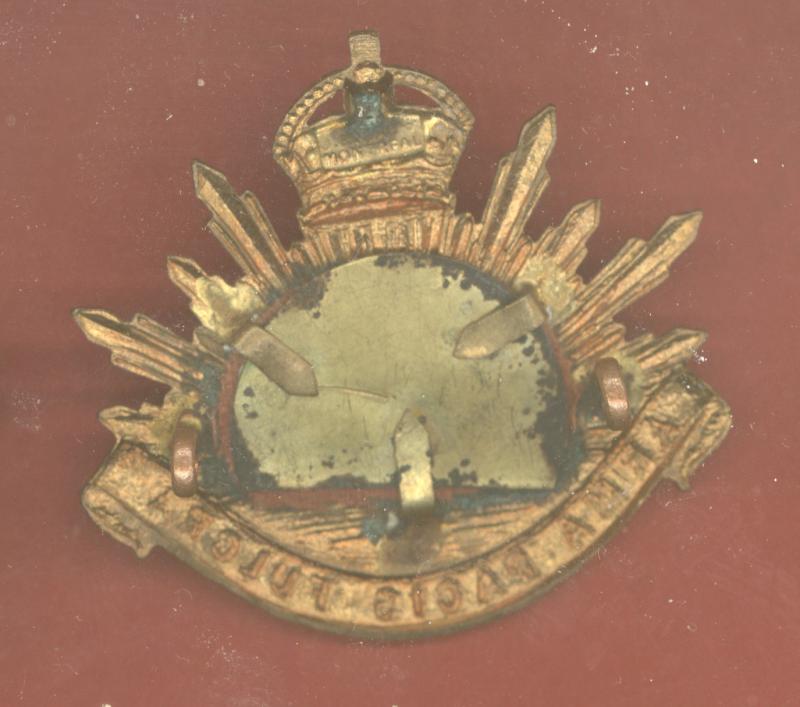 A super scarce die stamped gilded metal example. Two loops and original red cloth backing to the reverse. Makers tablet J.R.Gaunt, Montreal. VGC Mazeas MC.51.