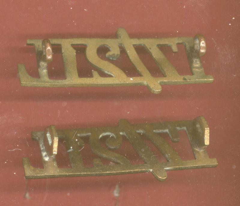 A good post 1922 large pattern pair of brass shoulder titles. Two loops/ lugs to the reverse of each title. VGC. Westlake 173