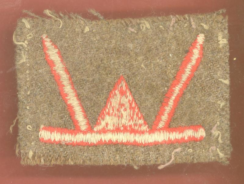 A good embroidered red "W" on khaki cloth rectangle. Removed from uniform. VGC.