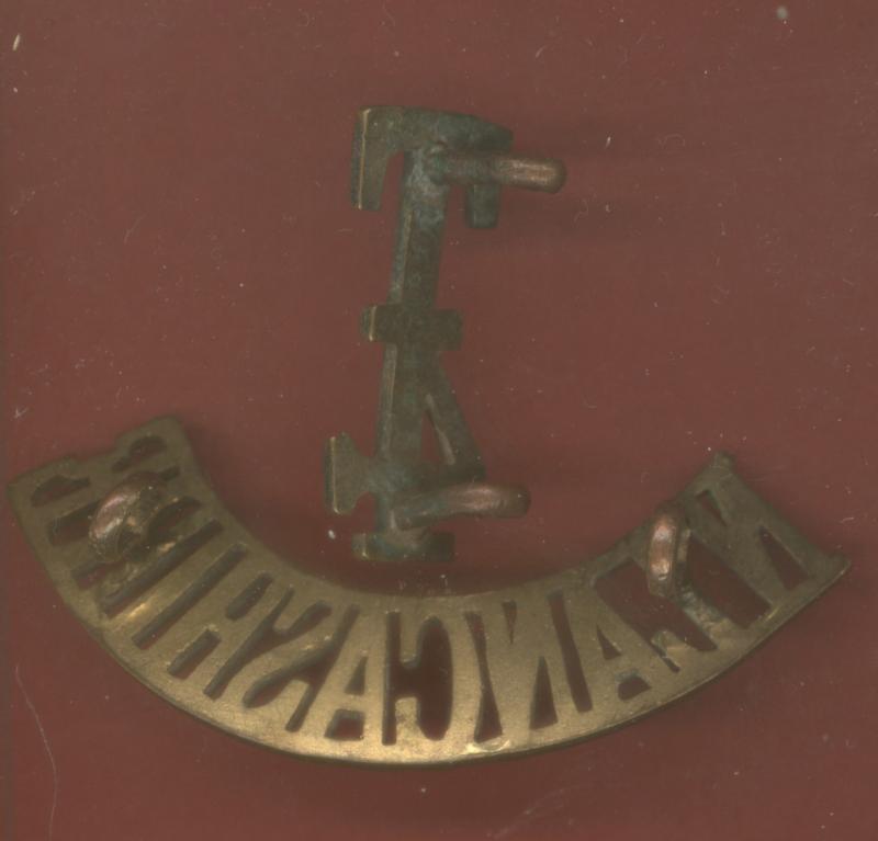 A good scarce two part brass metal shoulder title to the 4th Territorial Battalion, The Loyal North Lancashire Regiment. Two loops to the reverse of each part. VGC
