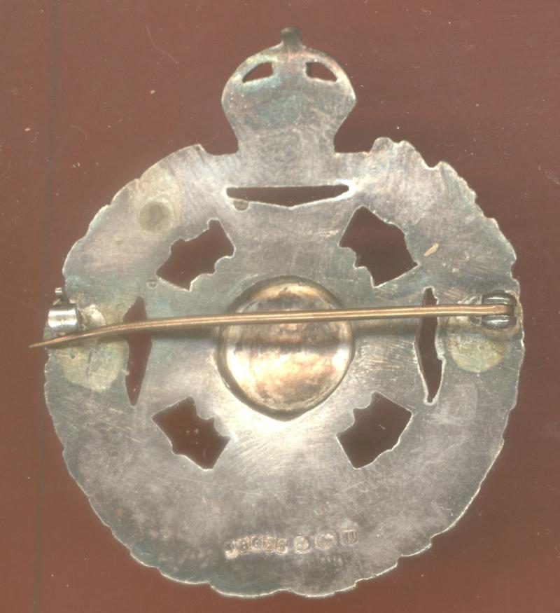 A fine scarce die-cast silver example bearing Birmingham hallmarks for 1944 (U) . Makers stamp J.R.G.&S. (J.R.Gaunt & Sons). Brooch pin to the reverse. VGC