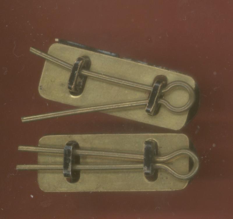 A good pair of Q.G.E. blackened brass shoulder titles. Two lugs to the reverse of each title. GC...