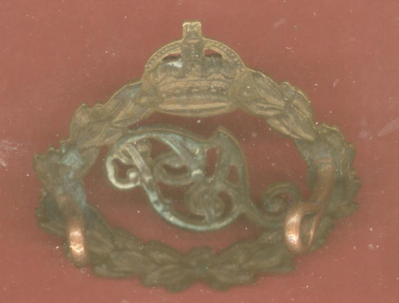 A fine scarce british made example worn circa 1902-1913 in cap and helmet. Die stamped bronze metal example with 'NP' to voided centre. Two long loops to the reverse. VGC As Owen 1889