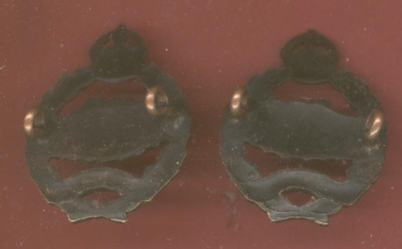 A good scarce post 1926 matching large pattern die cast bronze metal facing pair of Officer's Service Dress collar badges. Two loops to the reverse of each collar. VGC