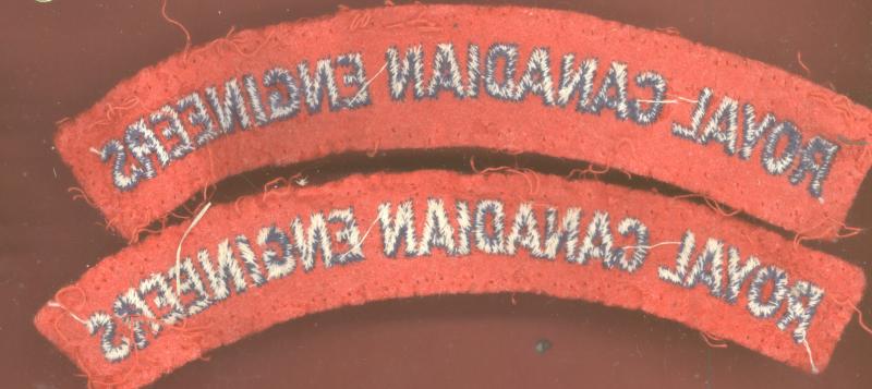 A good scarce blue embroidered letters on red felt titles. Removed from uniform. GC.