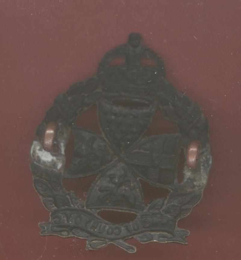 A good scarce die stamped blackened brass example worn circa 1909. Two loops to the reverse. GC....