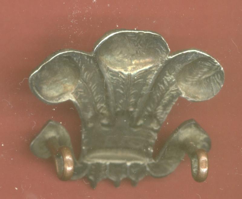 A good scarce die stamped silvered metal Prince of Wales's Plumes example . Two long loops to the reverse. VGC.