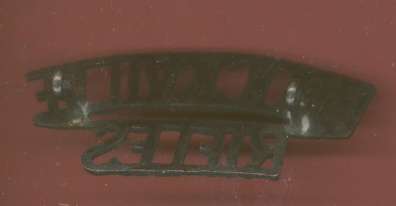 A good scarce blackened brass shoulder title. Two loops to the reverse. VGC
