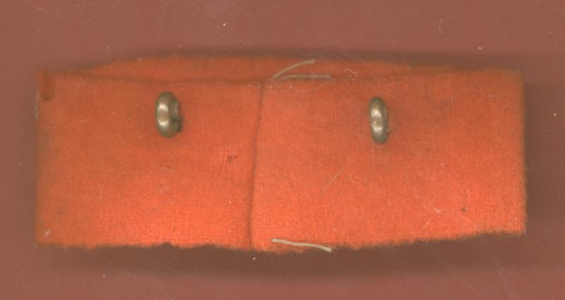 A good scarce hand cut brass shoulder title worn circa 1914. Two loops to the reverse. Mounted on original red felt loop. VGC. Owen 2195